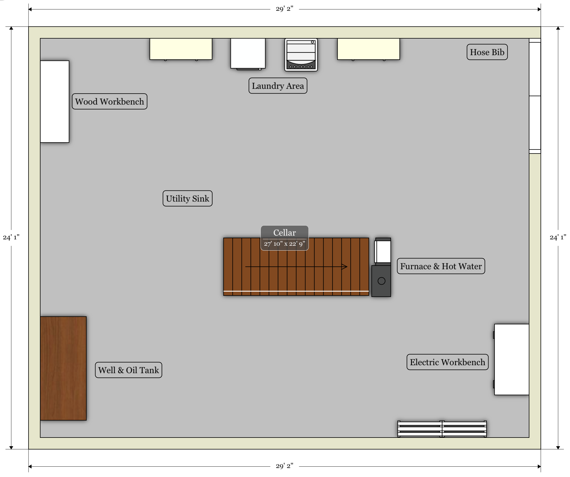 The walk-in cellar is the heart of the house. It holds all the utilites: boiler, heater, electrical, etc.